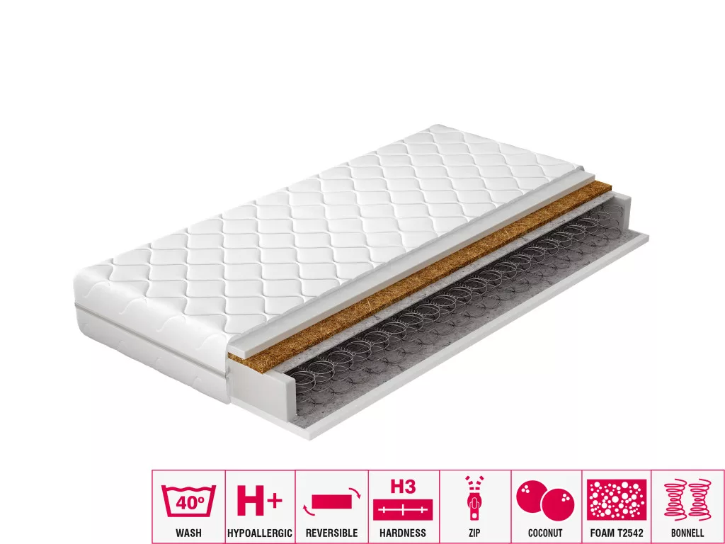 A jó éjszakai alvás garanciája a tökéletesen megválasztott matrac. Tudjuk, milyen fontos ez a választás, ezért bemutatjuk Önnek az OSLO bonell matracot. A Bonell rugó garancia arra, hogy a matrac nem deformálódik használat közben, ami rendkívül fontos az alvási kényelem szempontjából. Ezenkívül az Oslo matrac két oldalán filc távtartókkal védi a rugókat. A T2542 hab kétoldalas használata tovább növeli az alvási kényelmet. Az Oslo matrac kókuszlap elválasztóval is rendelkezik, amivel még jobban alszol. Mindezt egy levehető burkolatba zárva.