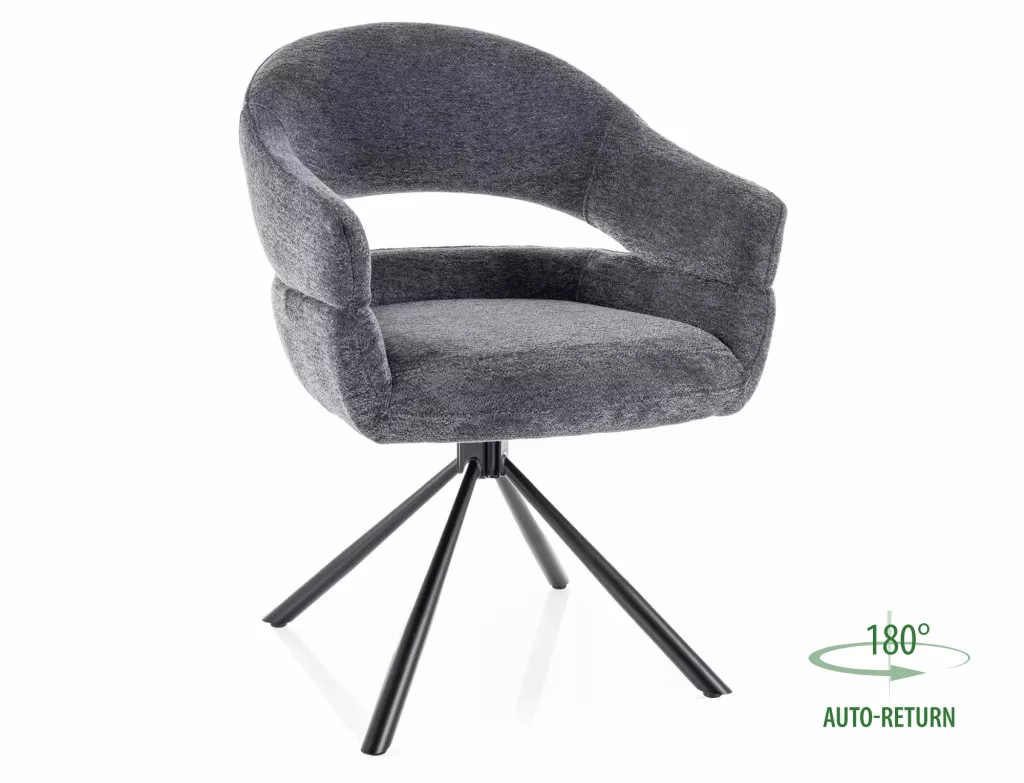 Szék, kárpitozás: Raven 18 szövet, váz: fém, szín: sötétszürke / matt fekete. Automatikus visszatérési funkció - az ülés 180 fokban elforgatható, és visszatér az eredeti helyzetébe.