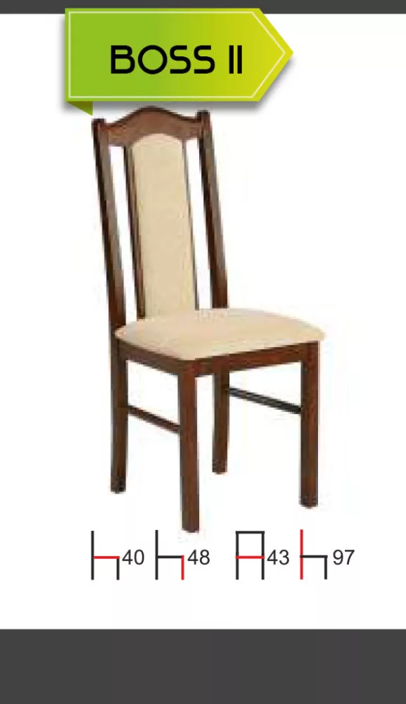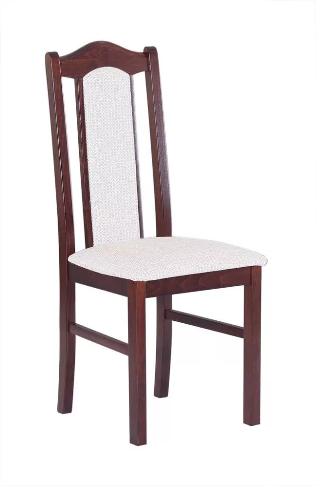 Elegáns, tömör bükkfából készült, kárpitozott étkezőszék, a klasszikus bútorokra emlékeztető vonalvezetéssel.