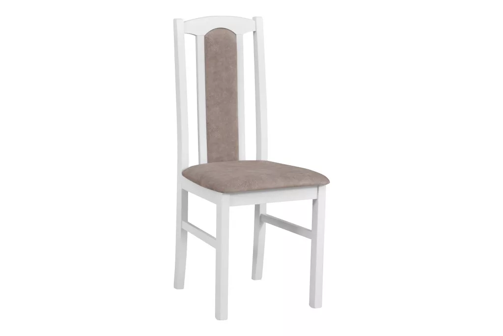 Elegáns, tömör bükkfából készült, kárpitozott étkezőszék, a klasszikus bútorokra emlékeztető vonalvezetéssel.