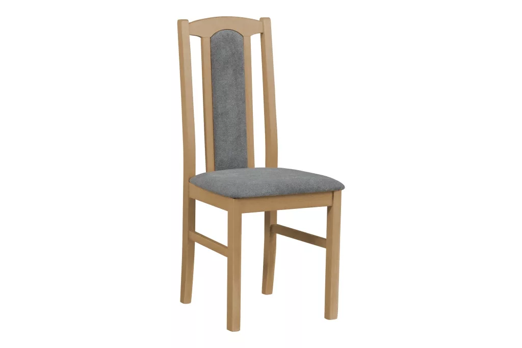 Elegáns, tömör bükkfából készült, kárpitozott étkezőszék, a klasszikus bútorokra emlékeztető vonalvezetéssel.