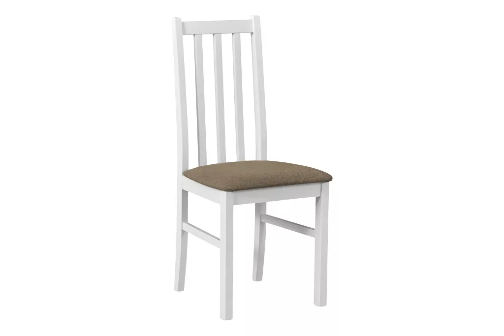 Elegáns, tömör bükkfából készült, kárpitozott étkezőszék, a klasszikus bútorokra emlékeztető vonalvezetéssel.