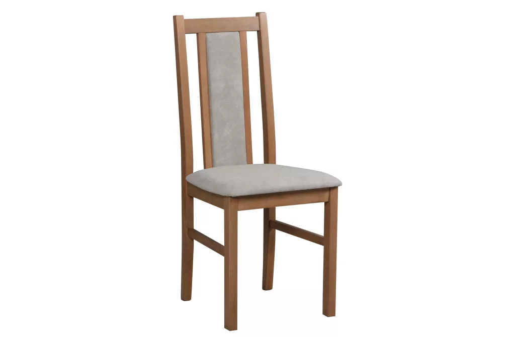 Elegáns, tömör bükkfából készült, kárpitozott étkezőszék, a klasszikus bútorokra emlékeztető vonalvezetéssel.