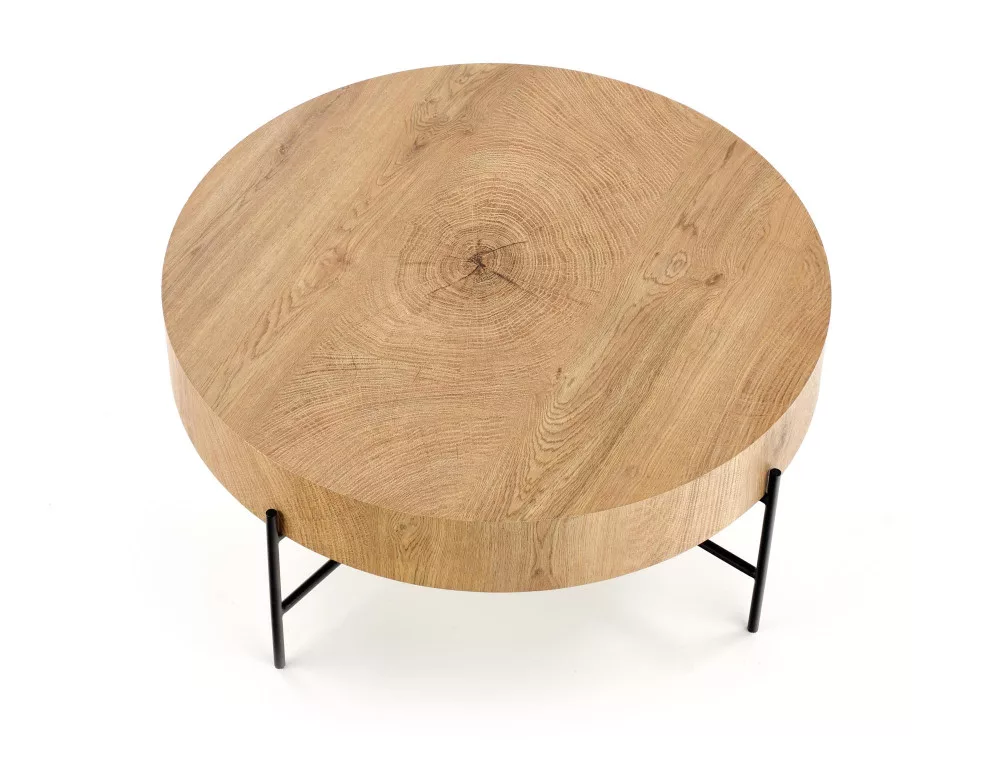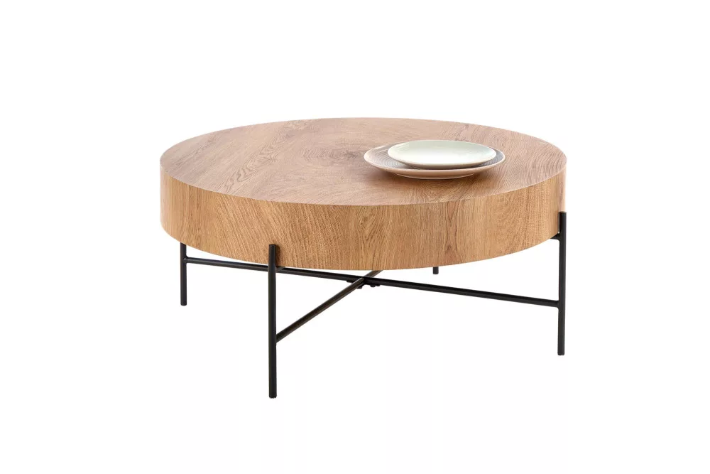 Modern dohűnyzóasztal természetes tölgy színű, MDF asztallappal, porszórt acél lábbal.