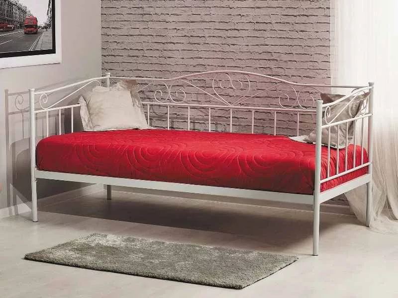 Ágy, anyaga: fém, színe: fehér. Fémprofilokból készült, az ágykerethez mereven rögzített vázat tartalmaz. Matrac mérete: 90x200cm (ár matrac nélkül).