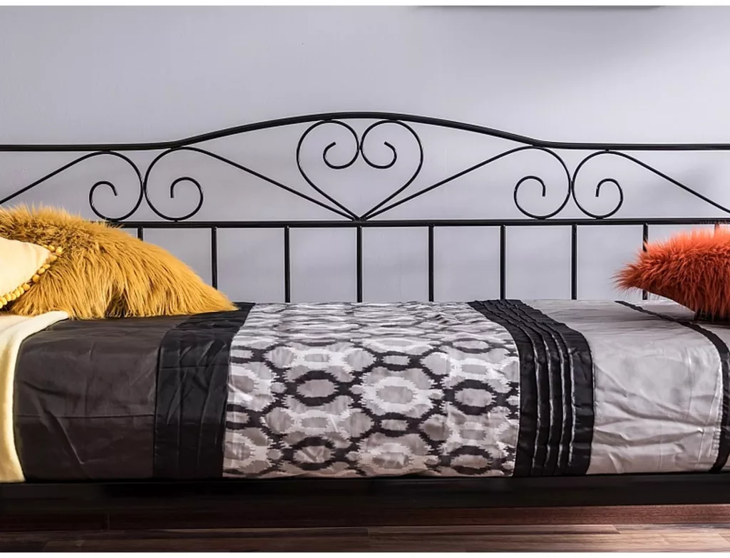 Ágy, anyaga: fém, színe: fekete. Fémprofilokból készült, az ágykerethez mereven rögzített vázat tartalmaz. Matrac mérete: 90x200cm (ár matrac nélkül).