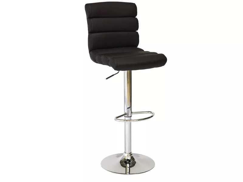 Krómozott fém lábakkal, lábtartóval ellátott ökobőr ülőfelületes bárszék.