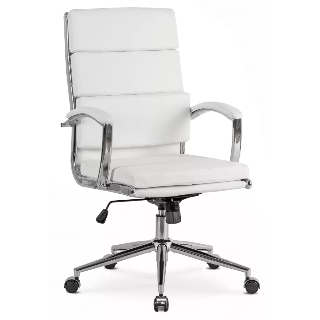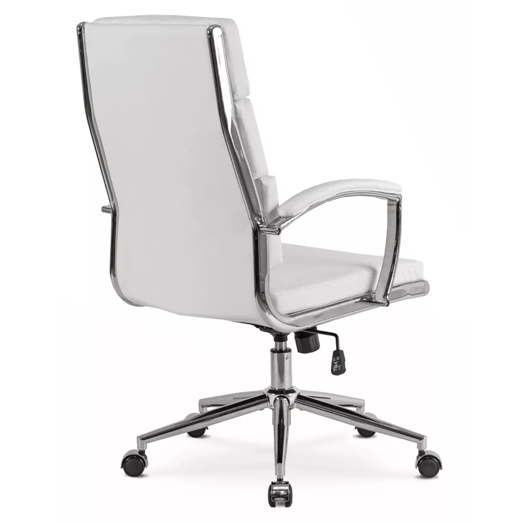 CAMILO Fehér Forgószék. Irodákba, dolgozószobákba és otthoni munkaterületekre olyan bútorokra van szükség, amelyek megfelelnek a mindennapi igényeknek és esztétikusak. A Camilo fehér forgószék tökéletes azok számára, akik értékelik a modern stílust, az ergonomikus megoldásokat és a masszív kidolgozást. Kifinomult formája és átgondolt kialakítása tökéletes kiegészítője a munkaterületeknek. Mitől tűnik ki? Modern megjelenés: A fehér eko-bőr kárpitozás króm részletekkel kombinálva finom, mégis professzionális megjelenést kölcsönöz. A Camilo remekül mutat mind otthoni irodában, mind vállalati térben vagy konferenciateremben. Kényelem, ami különbséget tesz: A vastag, puha ülés és az ergonomikusan kialakított háttámla garantálja a kényelmet még hosszú munkaórák során is. A párnázott karfák kartámaszt biztosítanak, a háttámla pedig minden pozícióban megtámasztja a gerincet. Teljes mindennapi funkcionalitás: A TILT mechanizmus lehetővé teszi mind a ringatás, mind a rögzítés funkciót, az állítható magasság pedig lehetővé teszi, hogy a szék bármilyen asztalhoz illeszkedjen. Stabil konstrukció