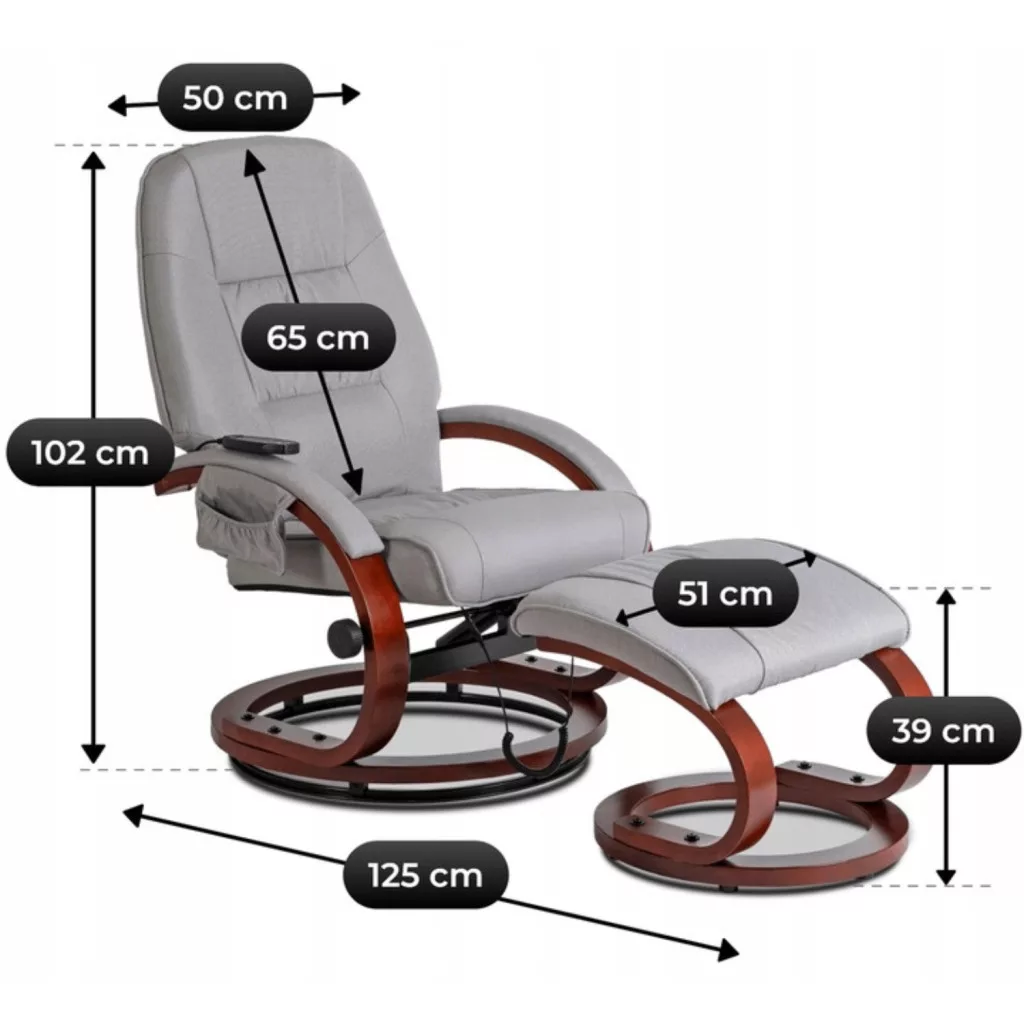 CANO fűthető masszázsfotel lábtartóval, szürke szövetből