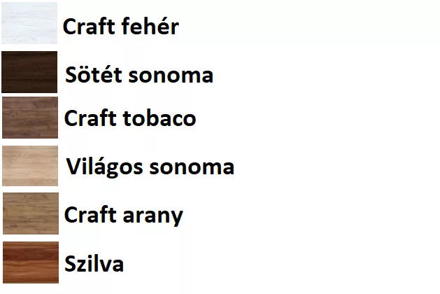Elérhető színek: Craft fehér/crafts tobaco/Craft arany/Világos sonoma/Sötét sonoma/Szilva/Éger