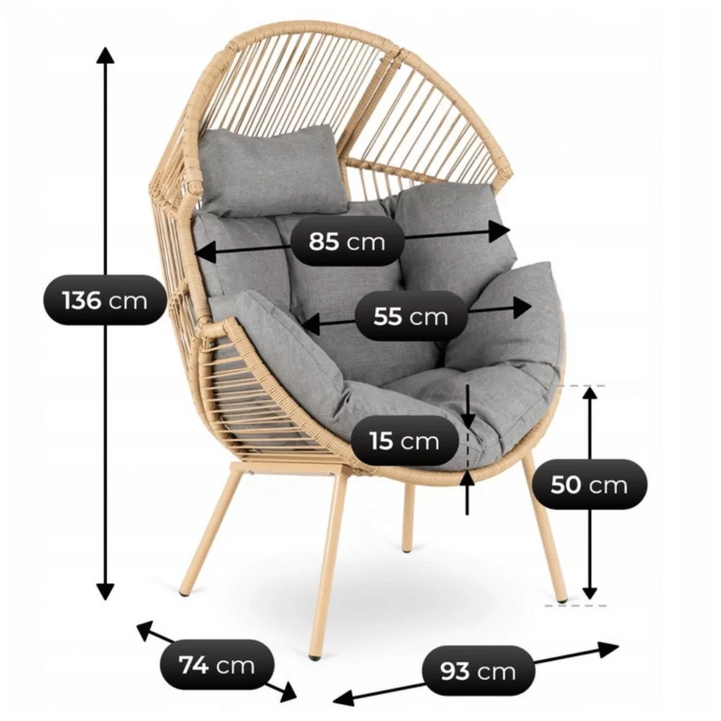 A Cezare Gray nyugágyfotel csábít a pihenésre egy hosszú nap után. A gubó forma kényelmes tartást és magánélet érzetét nyújtja, míg a puha párna fokozza az ülési kényelmet és lehetővé teszi a hosszabb pihenést. Termékjellemzők: gubó kialakítás - kényelmes, körülölelő ülőfelület, amely elősegíti a pihenést; Stabil fémváz - tartós és ellenáll a mindennapi használatnak; Fonott szövés fémvázon - természetes megjelenés és esztétikus kidolgozás; Vastag, puha, levehető párna - magas ülési kényelmet, jó háttámaszt biztosít, könnyen tisztítható és karbantartható. Hol fog a legjobban működni? A nappaliban vagy a társalgóban; fedett teraszon vagy erkélyen; olvasó- vagy pihenősarokban; a kertben, a teraszon vagy a verandán; Bővítse a Cezare fotelt a terében, és pihenjen úgy, ahogy Önnek tetszik.