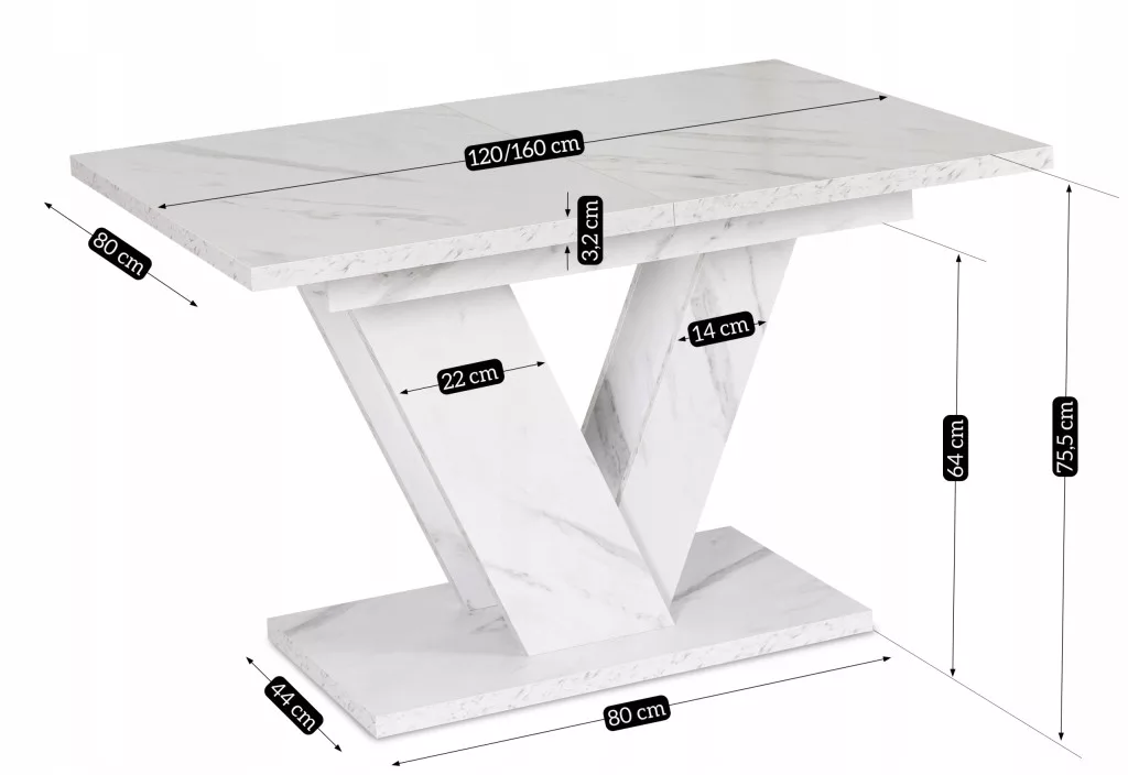 CLARK Kihúzható asztal 120-160 cm Fehér Márvány