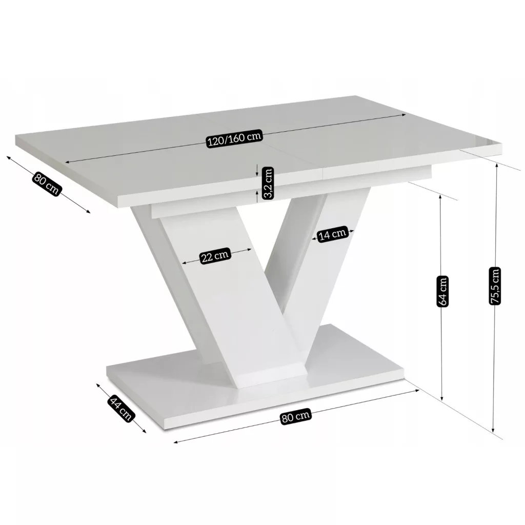 CLARK Kihúzható asztal 120-160 cm fényes fehér