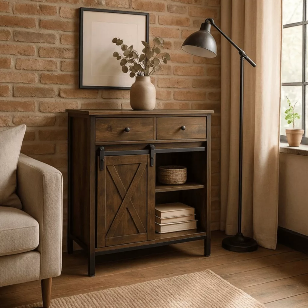 COLE Fiókos Komód 70 cm Rusztikus Tölgyfa/Fekete
