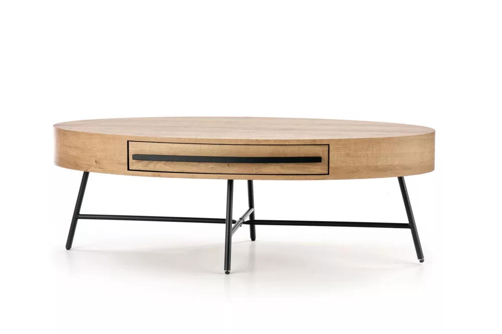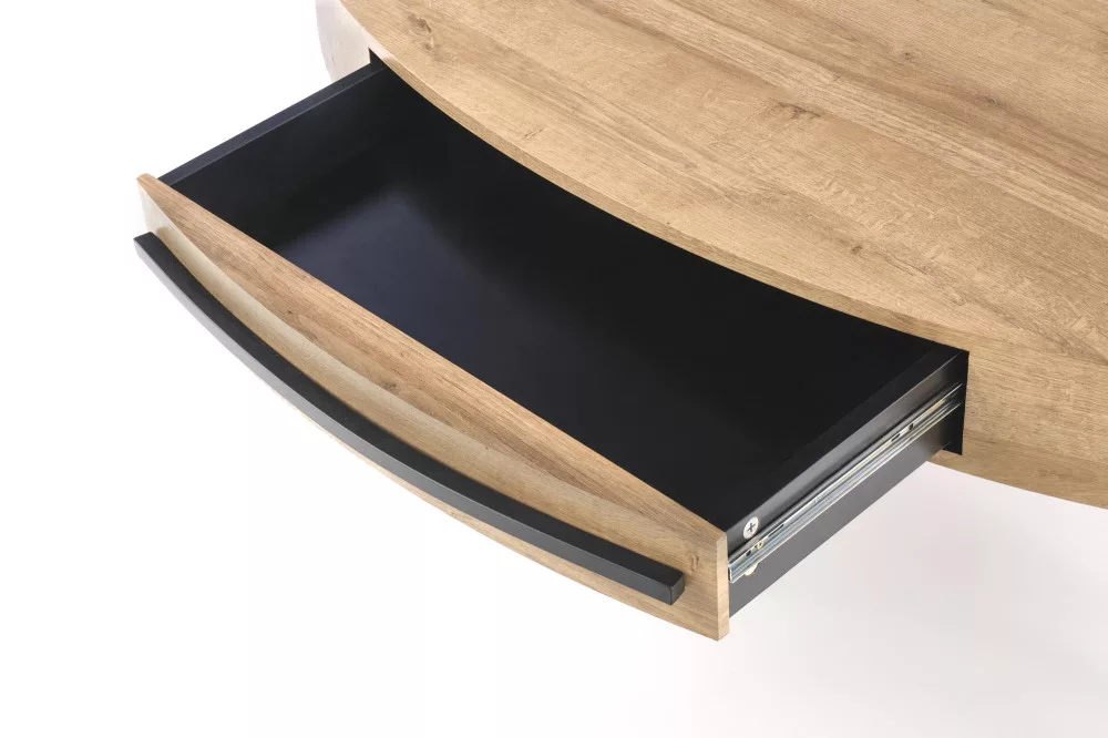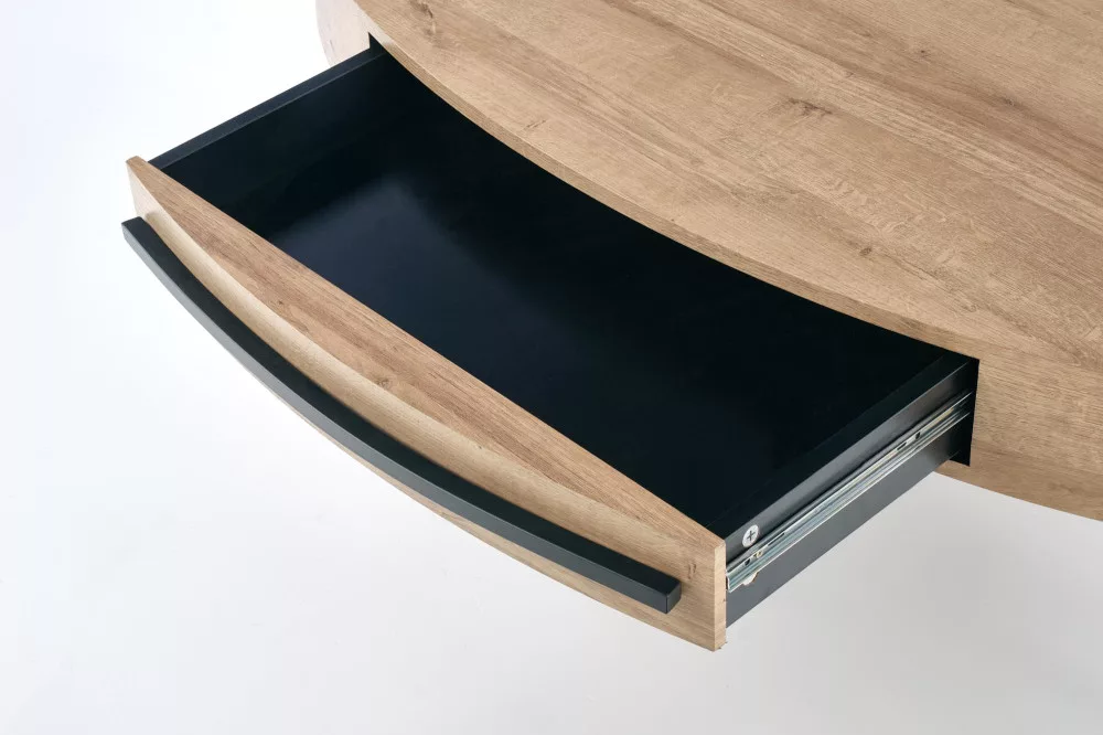 Modern dohányzóasztal, aranytölgy színű mdf asztallappal, porszórt acél lábbal.