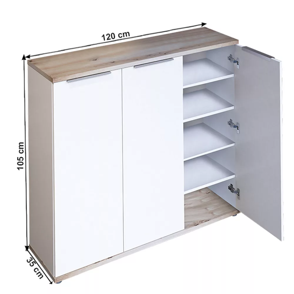 Cipősszekrény, fehér/tölgy artisan, MODINI TYP 2
