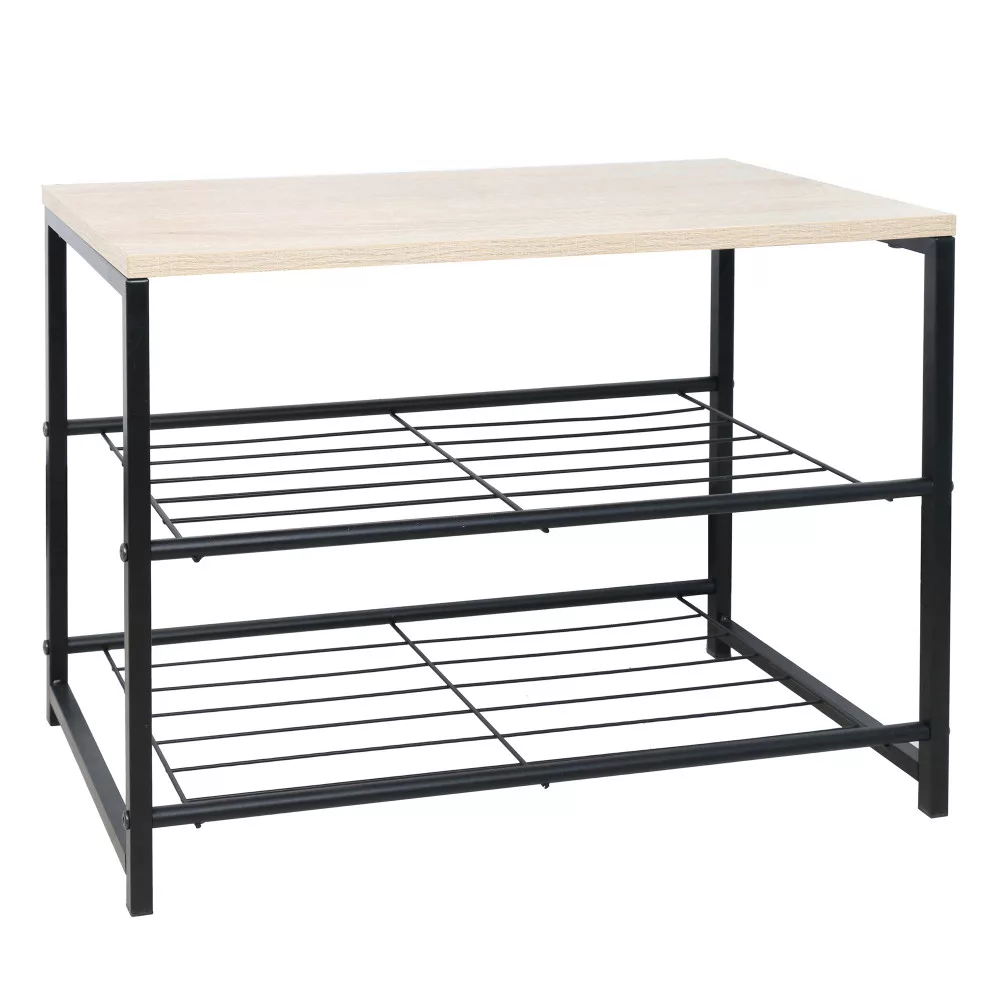 Cipőtartó, 2 soros, fekete/természetes, TADEO