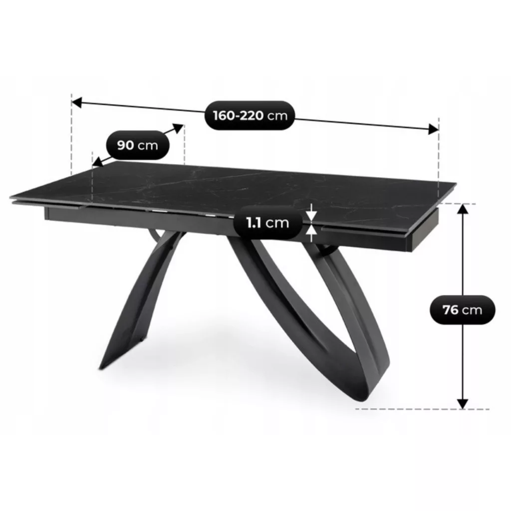 DEVON Kerámia Kihúzható Asztal 160-220 cm Fekete Márvány/Fekete