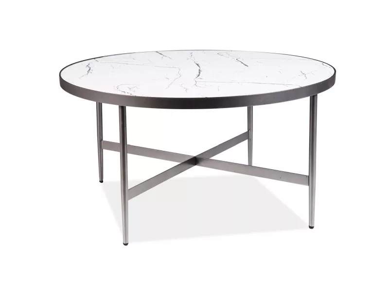 DOLORES B dohányzóasztal, márványozott edzett üveg asztallappal, szürkére színezett króm kerettel.