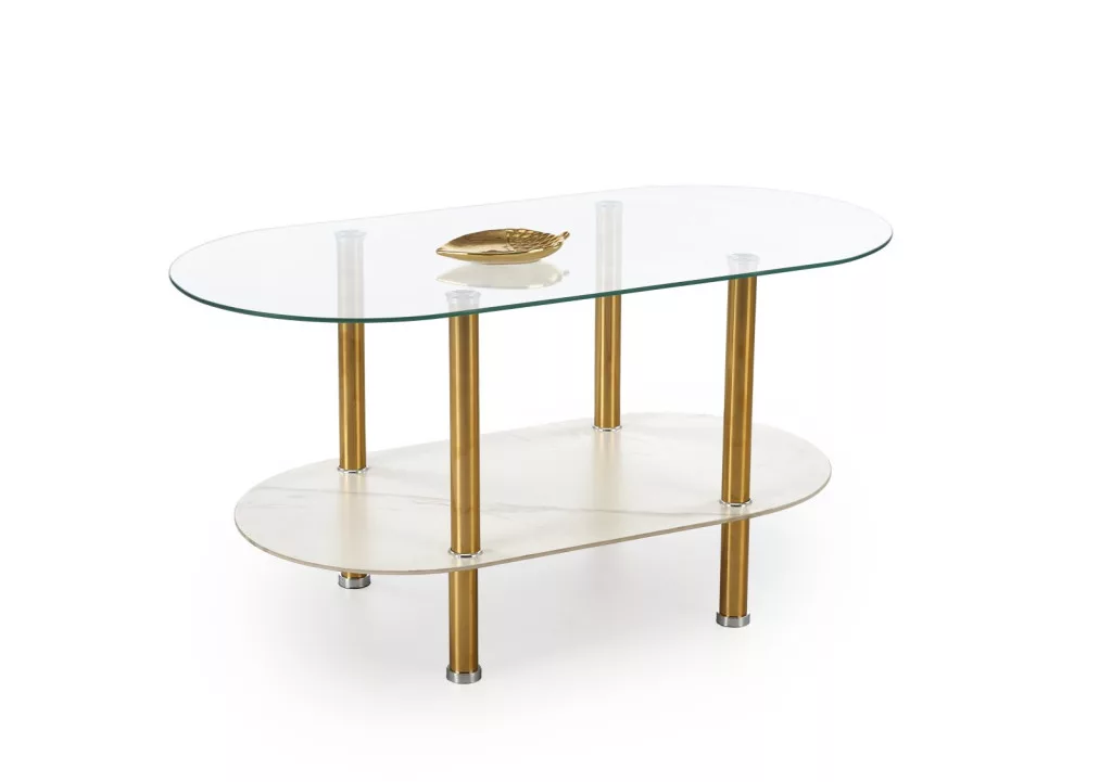 DUCAT dohányzóasztal, szín: fehér márvány/átlátszó/arany