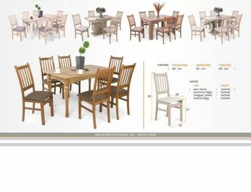 A székek váz és kárpit kombinációja nem variálható.