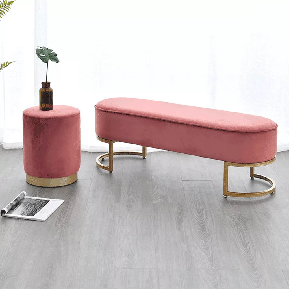 Ülés anyaga: Velvet szövet A szövet kopásállósága a Martindale teszt szerint: 80 000 ciklus Szín: rózsaszín Lábak anyaga: fém Lábak színe: gold króm-arany Méretek (SzxMéxMa): 100x40x43 cm Lábak magassága: 25 cm Ülés magassága: 43 cm Ülés mélysége: 40 cm Teherbírás: 100 kg Dizájnos Lábakon Modern kidolgozás Bontásban szállítva