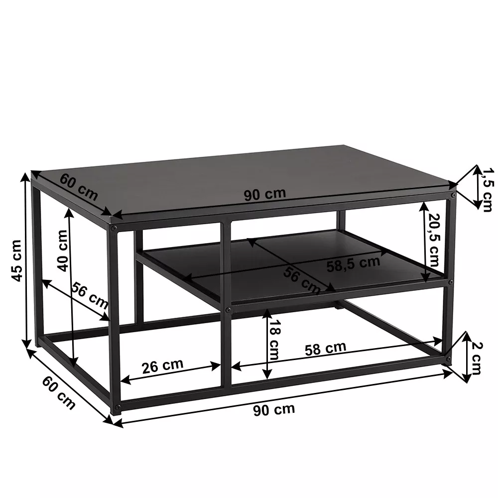 Asztal méretei (SzéxMéxMa): 90x60x45 cm