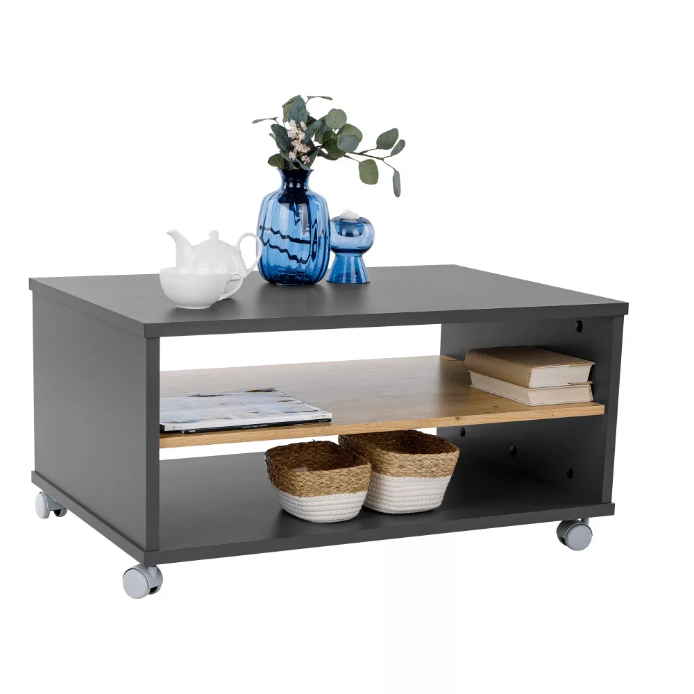 Dohányzóasztal, grafit/tölgyfa artisan, RIOMA NEW TYP 32