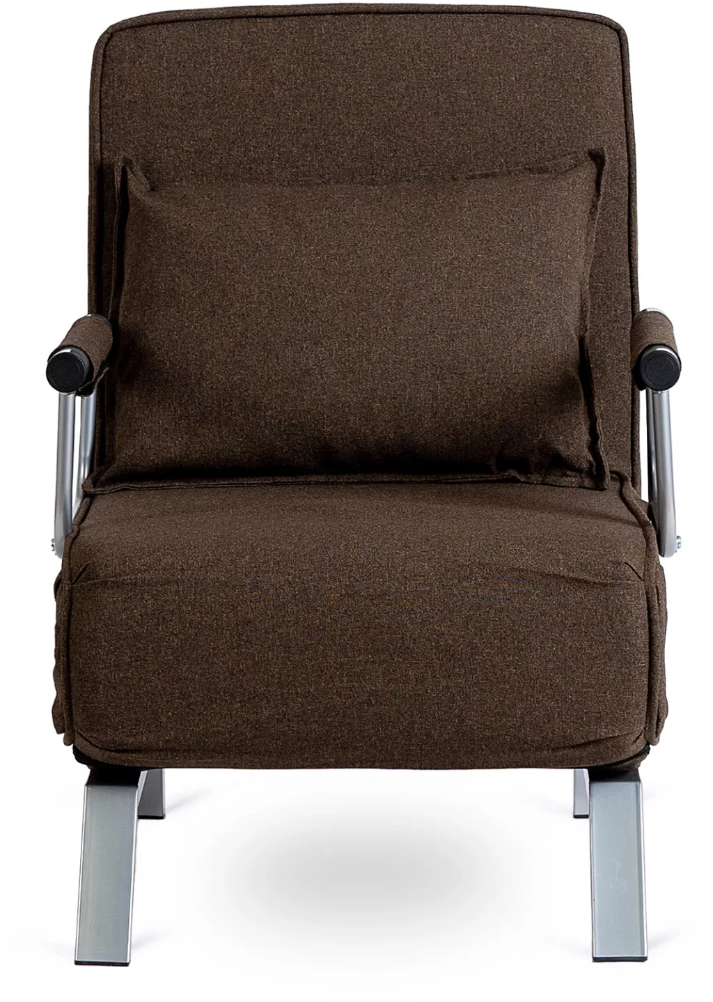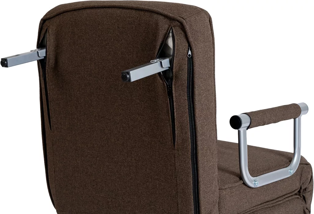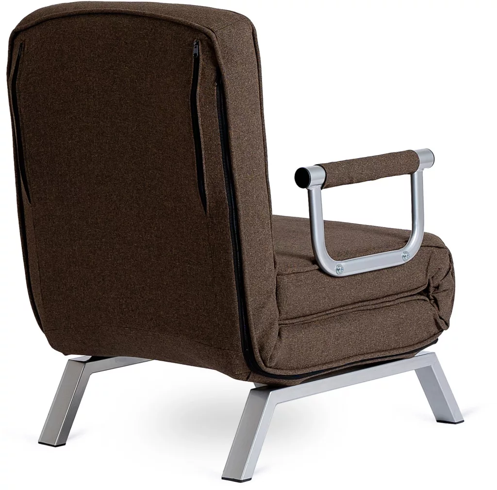 Modern dönthető fotel szövet kárpittal, barna színben. Karfás, ágyazható, 125 kg teherbírás, 63×72×83 cm.