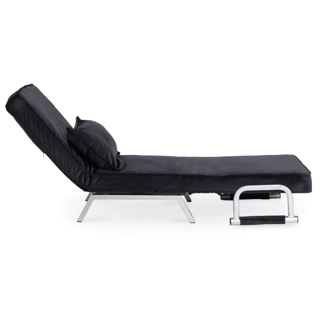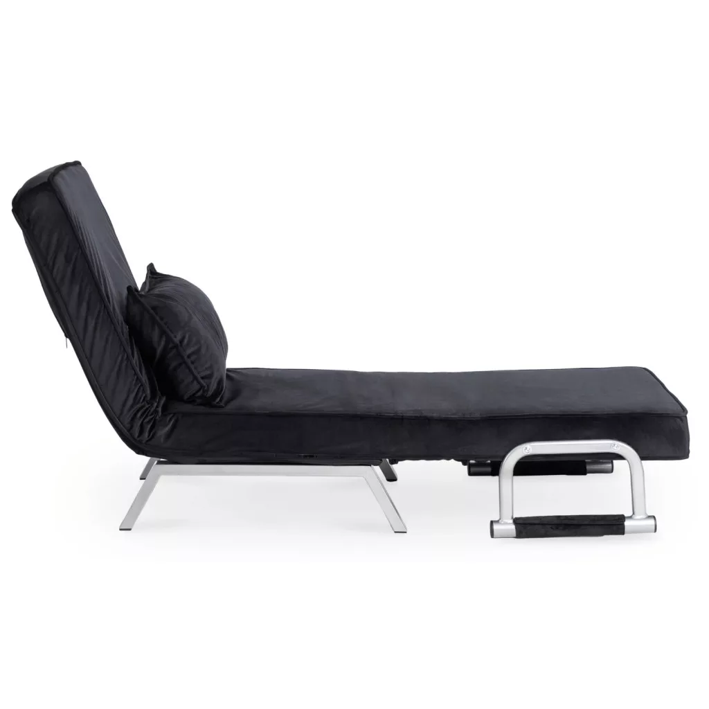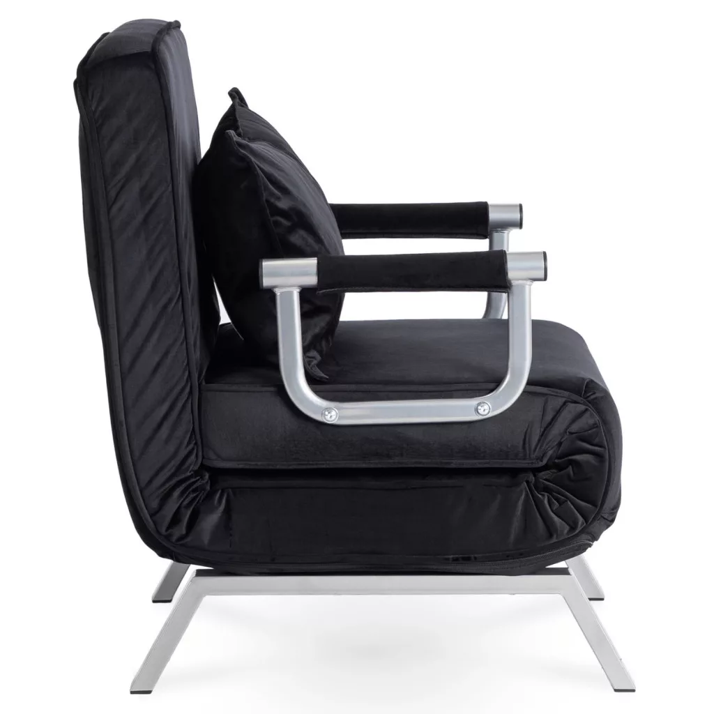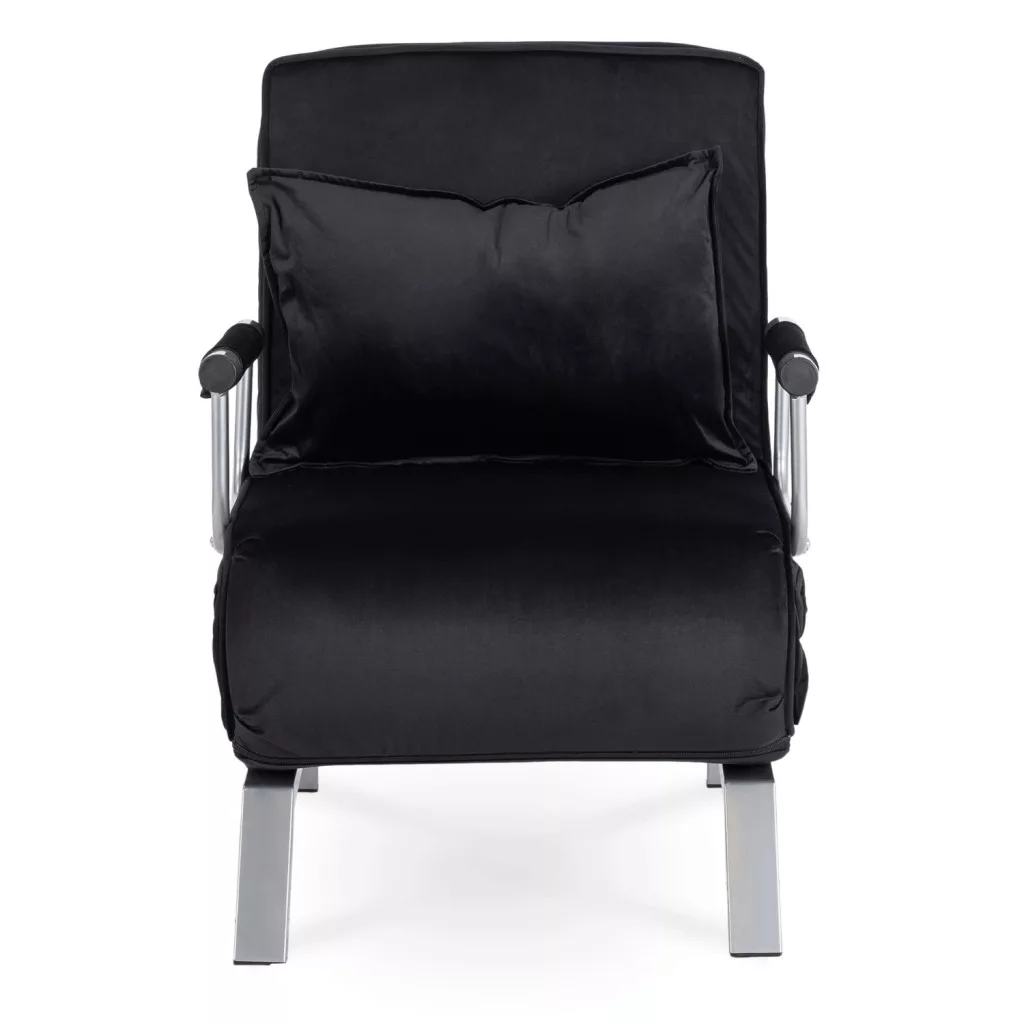 Dönthető bársony fotel BART fekete színben, karfával, ágyazható. 63×72×83 cm, 125 kg teherbírás, ülőfelület: 55×56 cm.