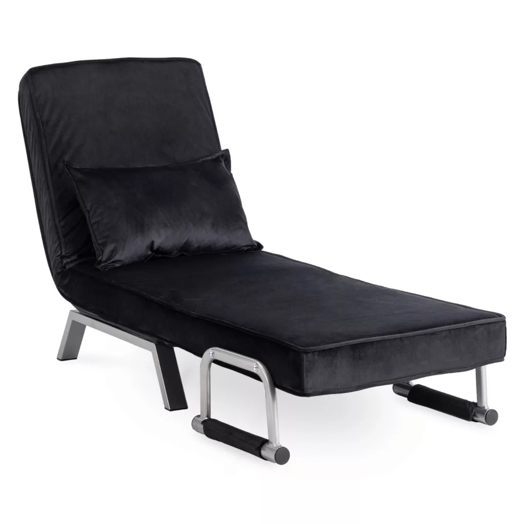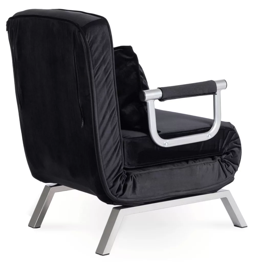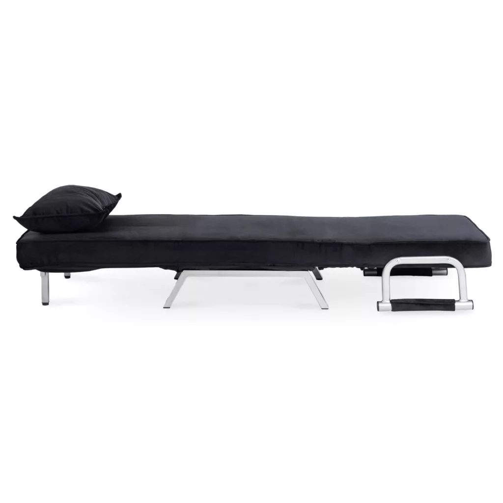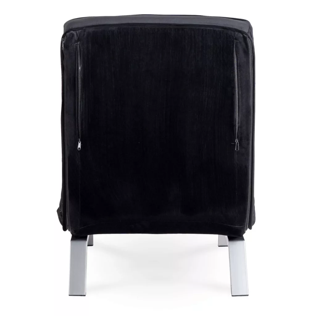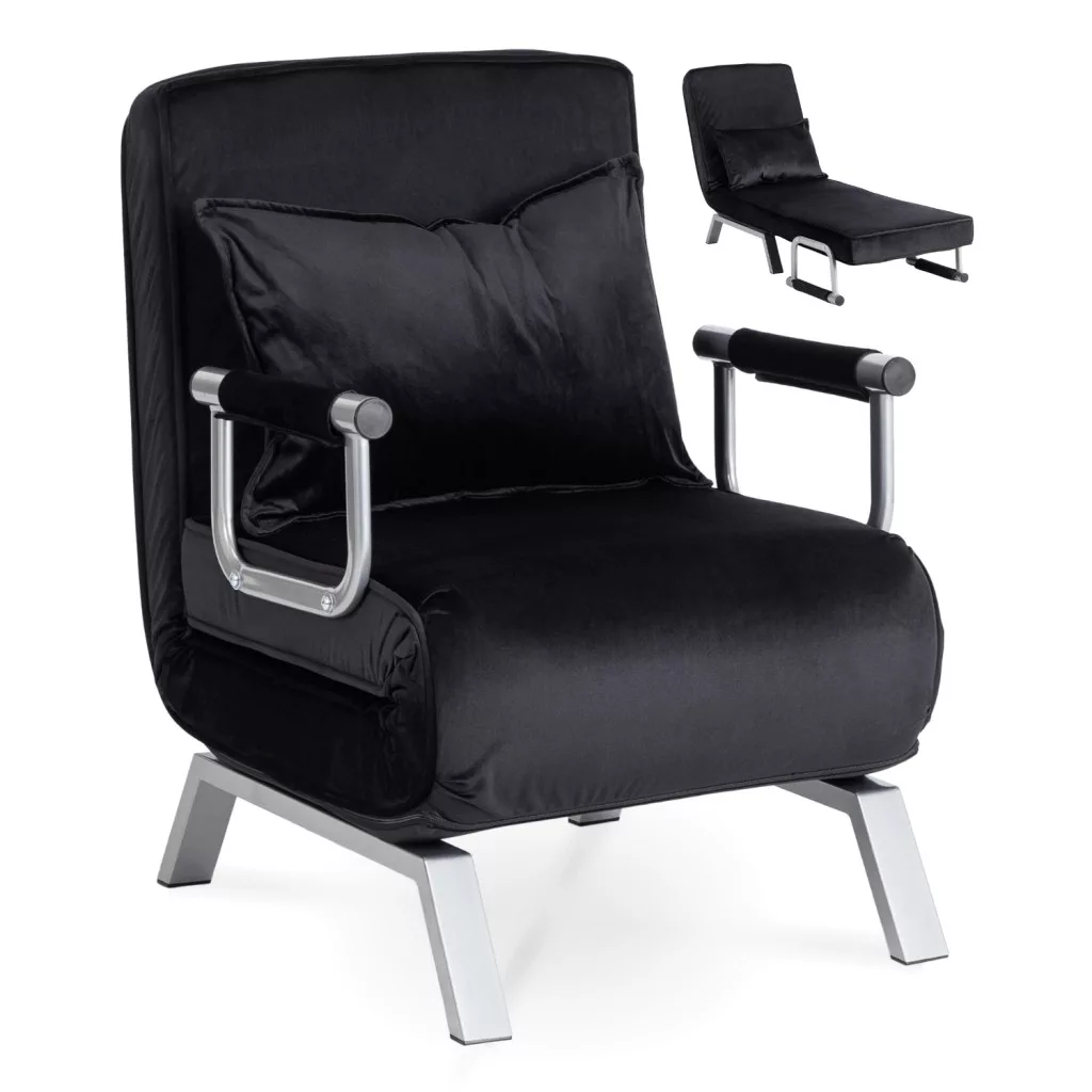 Dönthető bársony fotel BART fekete színben, karfával, ágyazható. 63×72×83 cm, 125 kg teherbírás, ülőfelület: 55×56 cm.