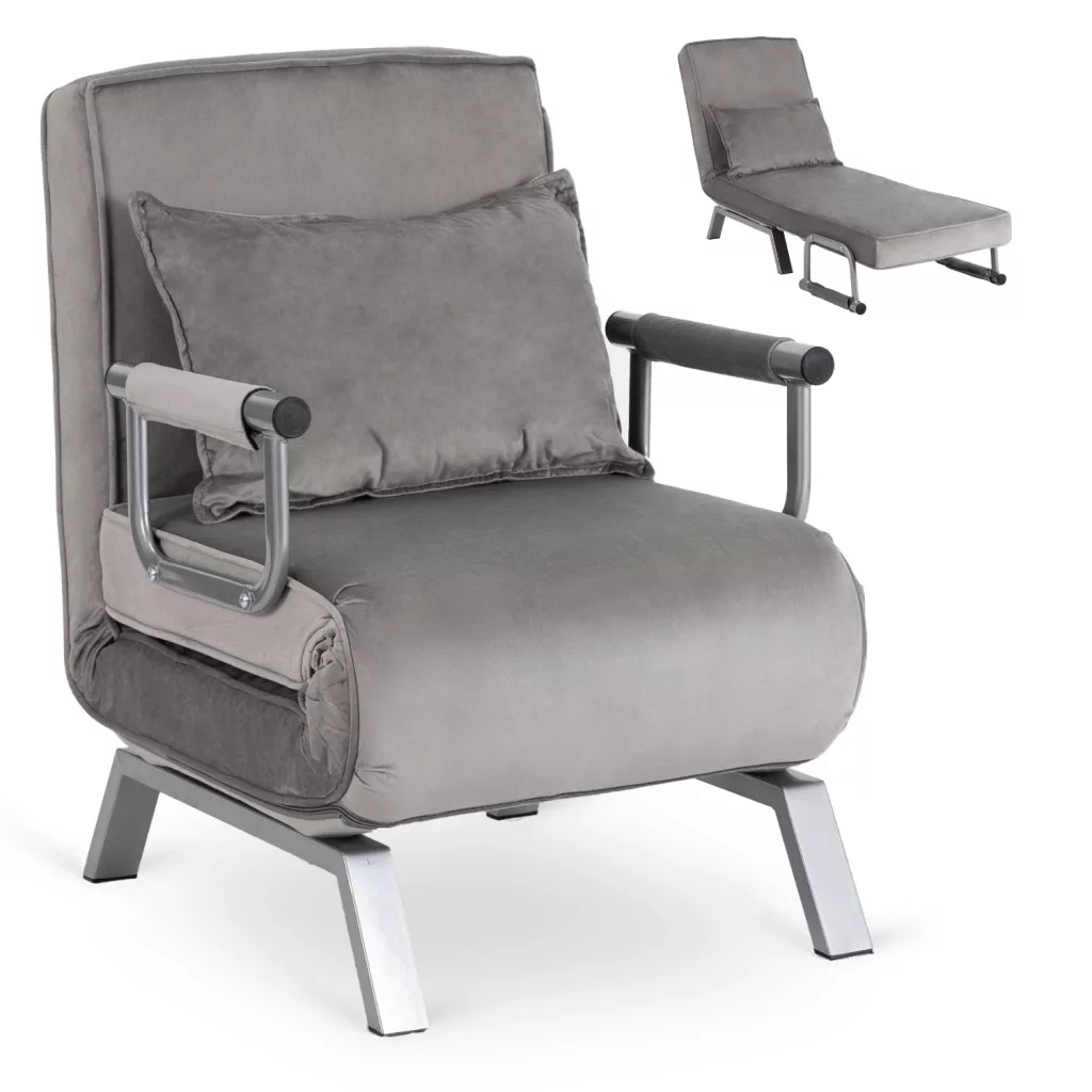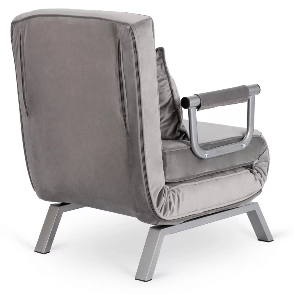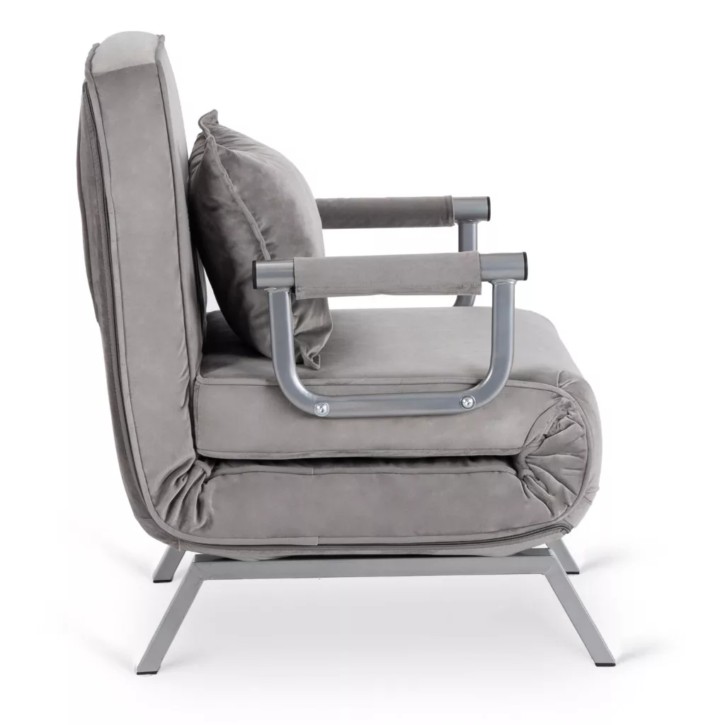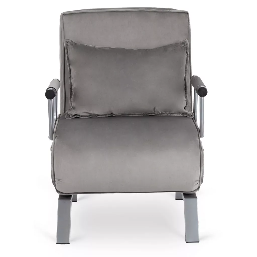 Dönthető bársony fotel BART szürke színben, karfával, ágyazható. 63×72×83 cm, 125 kg teherbírás, ülőfelület: 55×56 cm.
