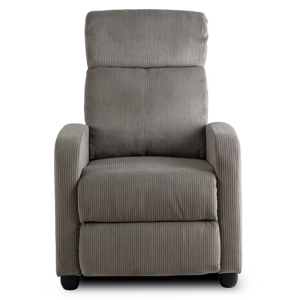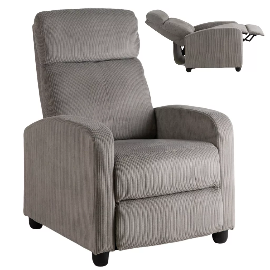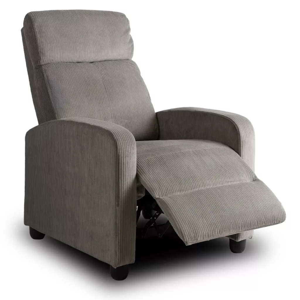 Dönthető sztruks fotel DANNY szürke színben, karfával és ágyazható funkcióval. 68×78×100 cm, 125 kg teherbírás.