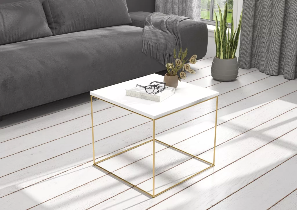 ELENA 50x50 kávéasztal, Arany, Fehér