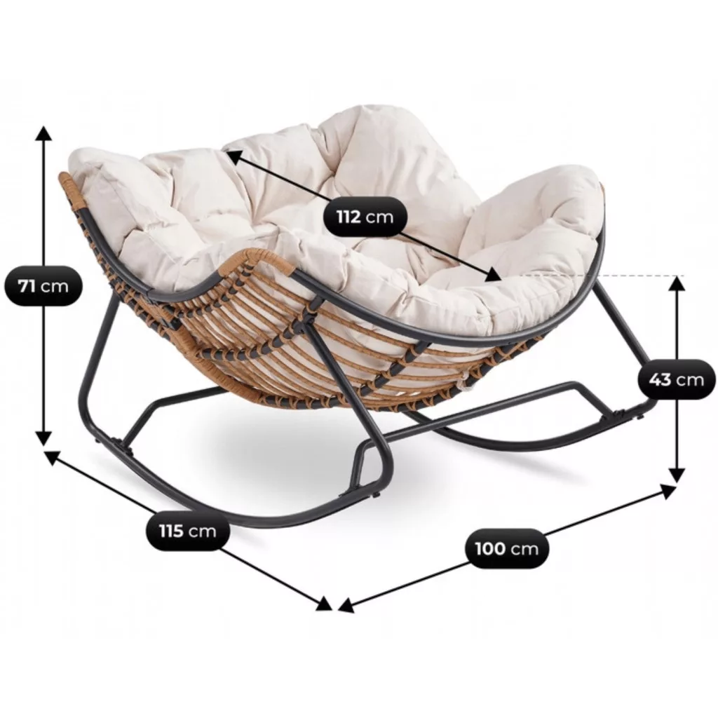 ELTON bézs hintaszék. Olyan bútordarabot keres, amely lehetővé teszi az igazi ellazulást? Az Elton hintaszék a tökéletes hely a kikapcsolódásra és a feltöltődésre. A finom ringatózás megnyugtat, a puha párna körülölel, modern kialakításának köszönhetően pedig szinte bárhová alkalmas – a nappalitól a kertig. Kivételesen kényelmes, stabil és praktikus – a pihenésre tervezték, évszaktól és helyszíntől függetlenül. Főbb termékjellemzők: mély kagylóülés – kényelem, amely az egész testet körülöleli; vastag, steppelt párna – puhaság, amely pihenésre csábít;