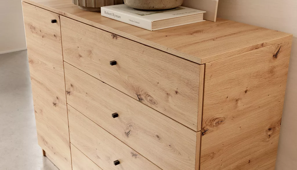 Az Evi I komód egy elegáns és funkcionalis bútordarab, amely tökéletesen illeszkedik sokféle belső térhez egyszerűsége és univerzális dizájnja révén. A komód forma egyszerű, így tökéletesen passzol modern, minimalista belső terekhez, de ugyanolyan jól mutat hagyományos berendezésekben is, modern elemeket adva nekik.