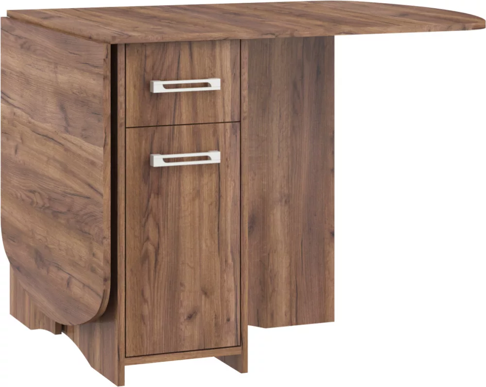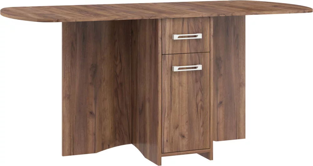 Összecsukható konyhai étkezőasztal, mely a bútor praktikusságának köszönhetően kis helyen is tökéletesen elfér.
