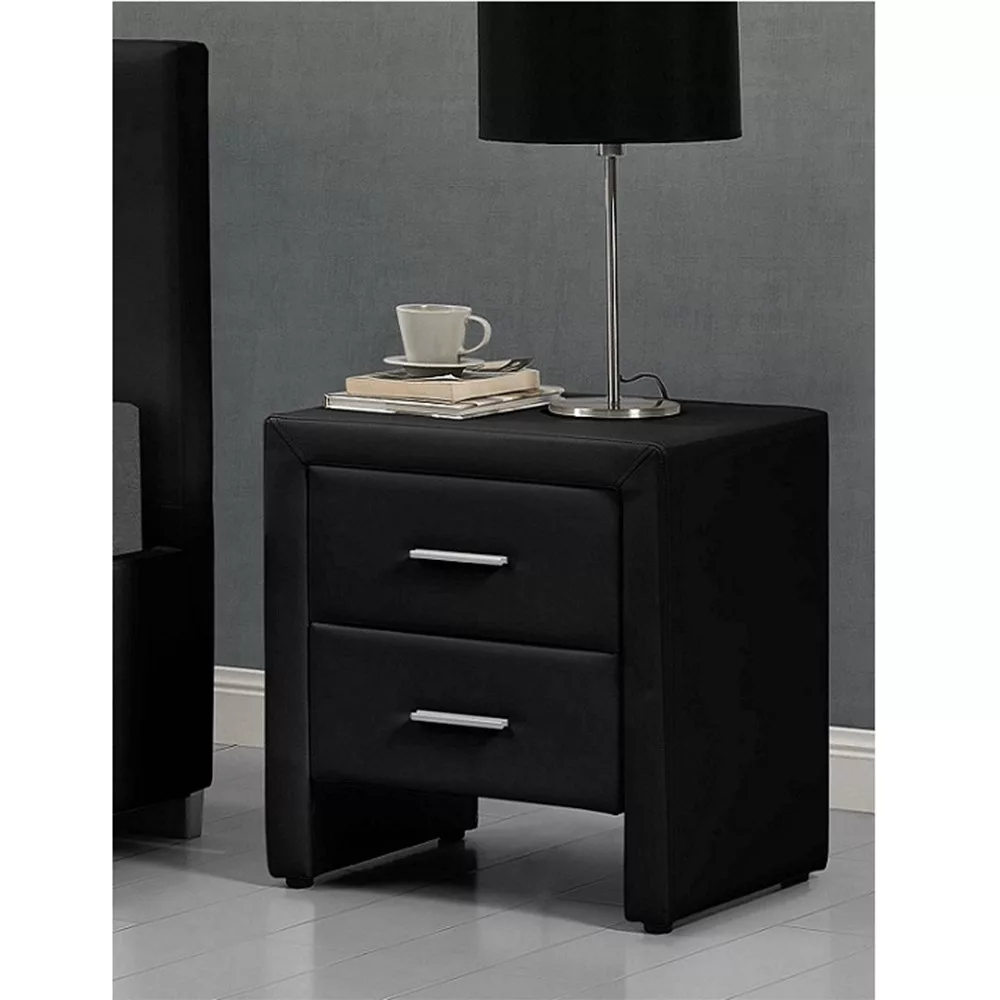 Éjjeliszekrény CASTEL, fekete textilbőr kivitelben