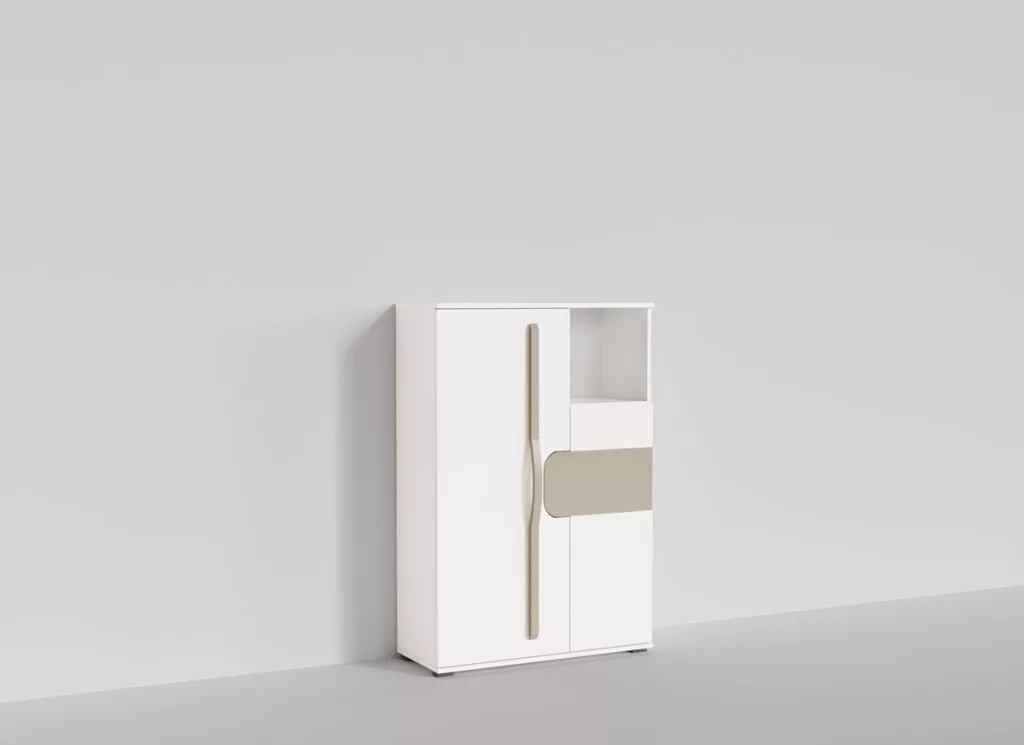 Nappali Elegance - Magas Fiókos Komód - E Modul - Finom és elegáns jegyek, amelyek friss levegőt kölcsönöznek az egész szobának, világos érzetet keltve.