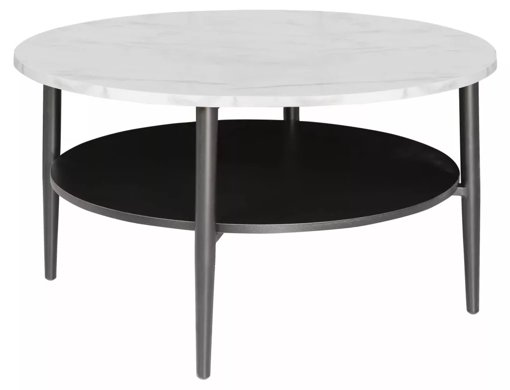 Dohányzóasztal, teteje: laminált bútorlap, váz: fém, szín: fehér, márványhatású / fekete.