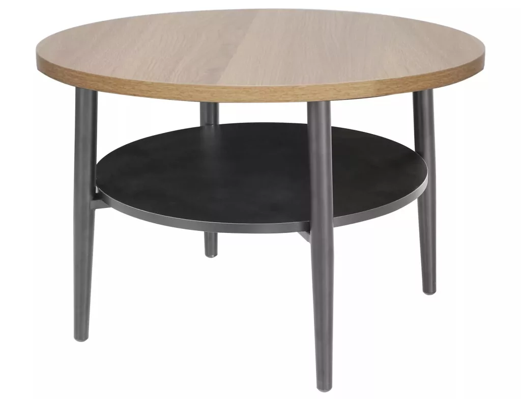Dohányzóasztal, teteje: laminált bútorlap, váz: fém, szín: tölgy / fekete.