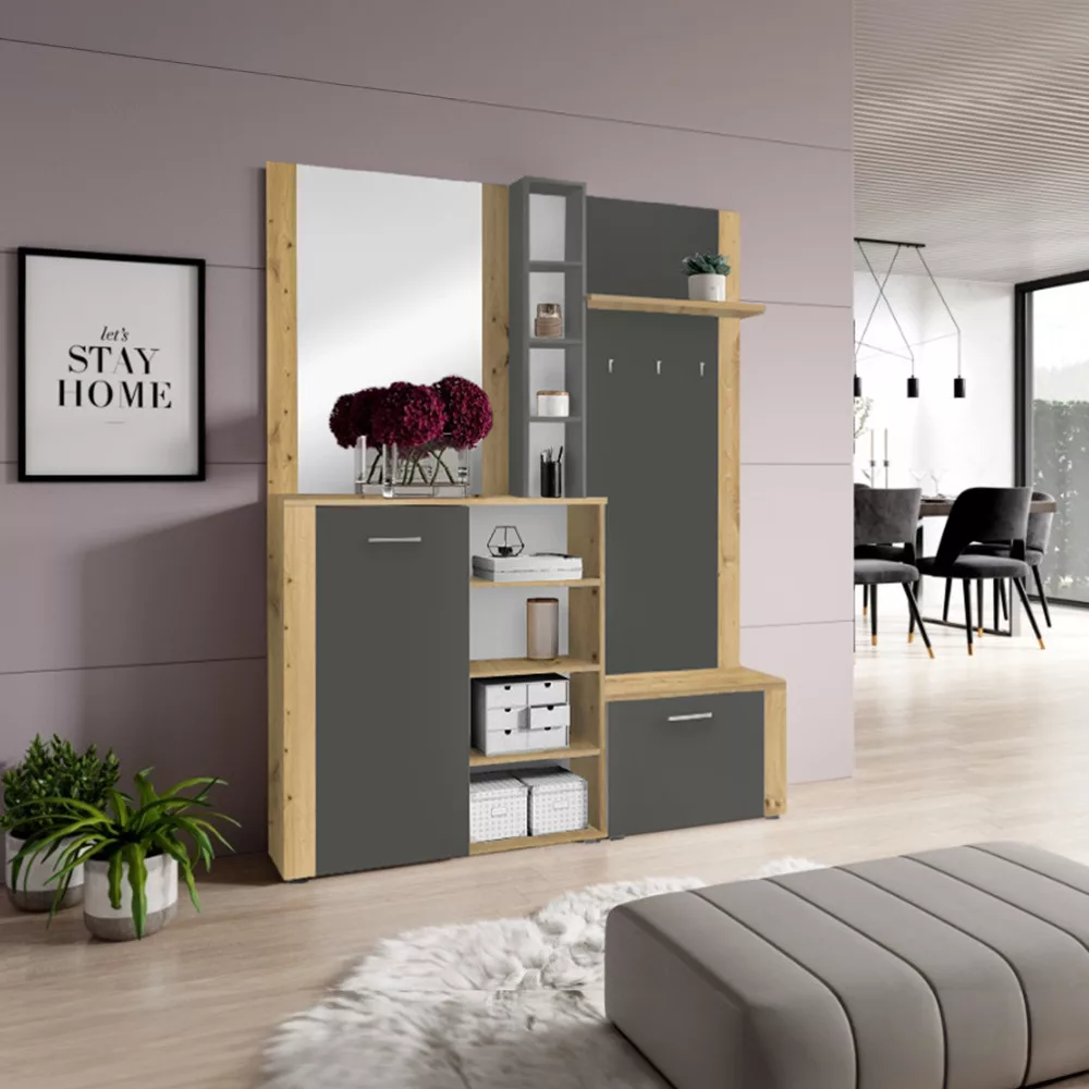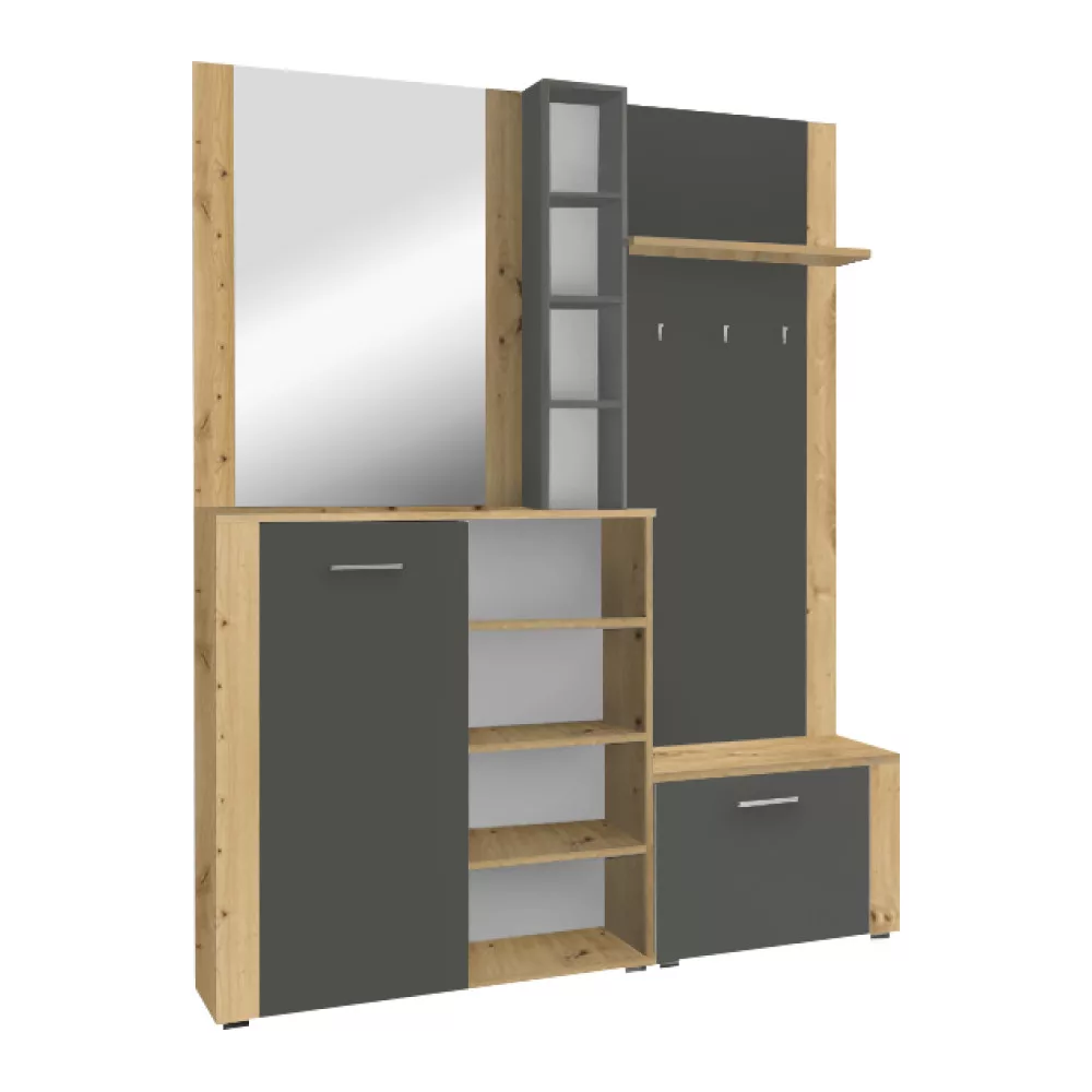 Előszobai készlet, artisan tölgy/grafit, FANDU