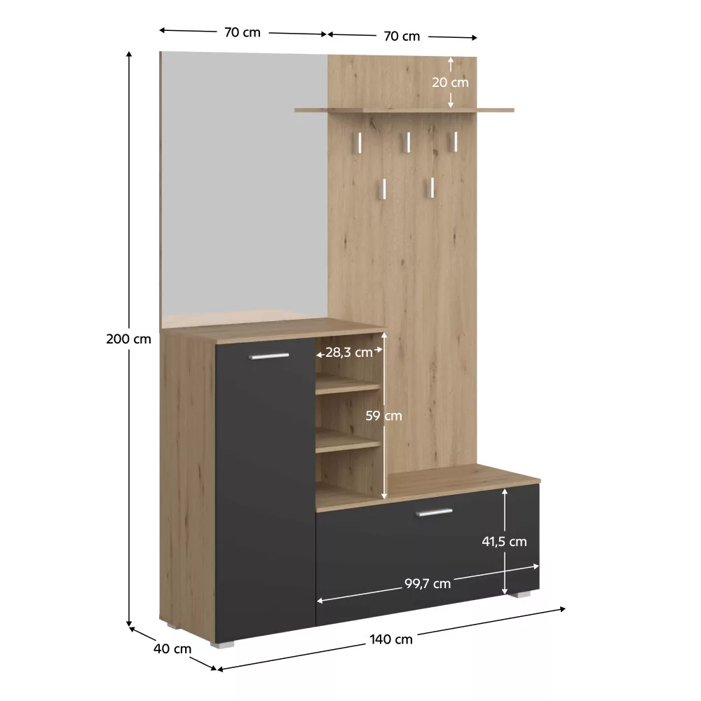 Előszobai készlet, artisan tölgy/grafit, VETLANDA