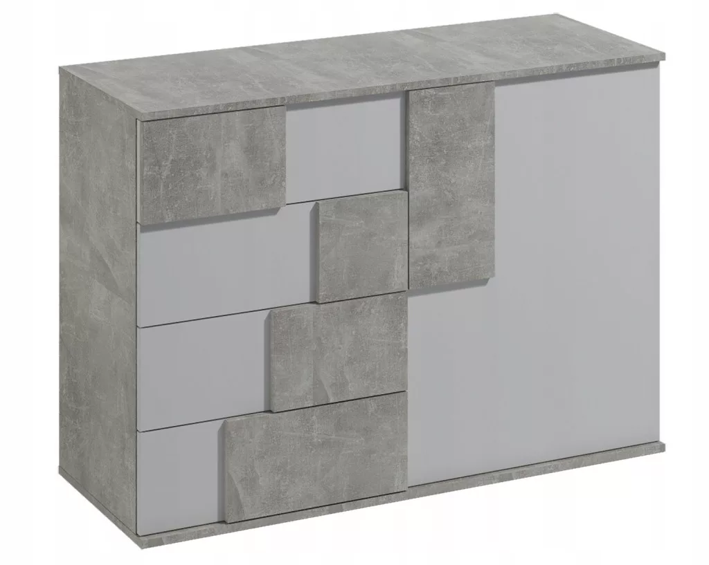 Elstra 1. egy ajtós, négy fiókos komód beton/fehér színben