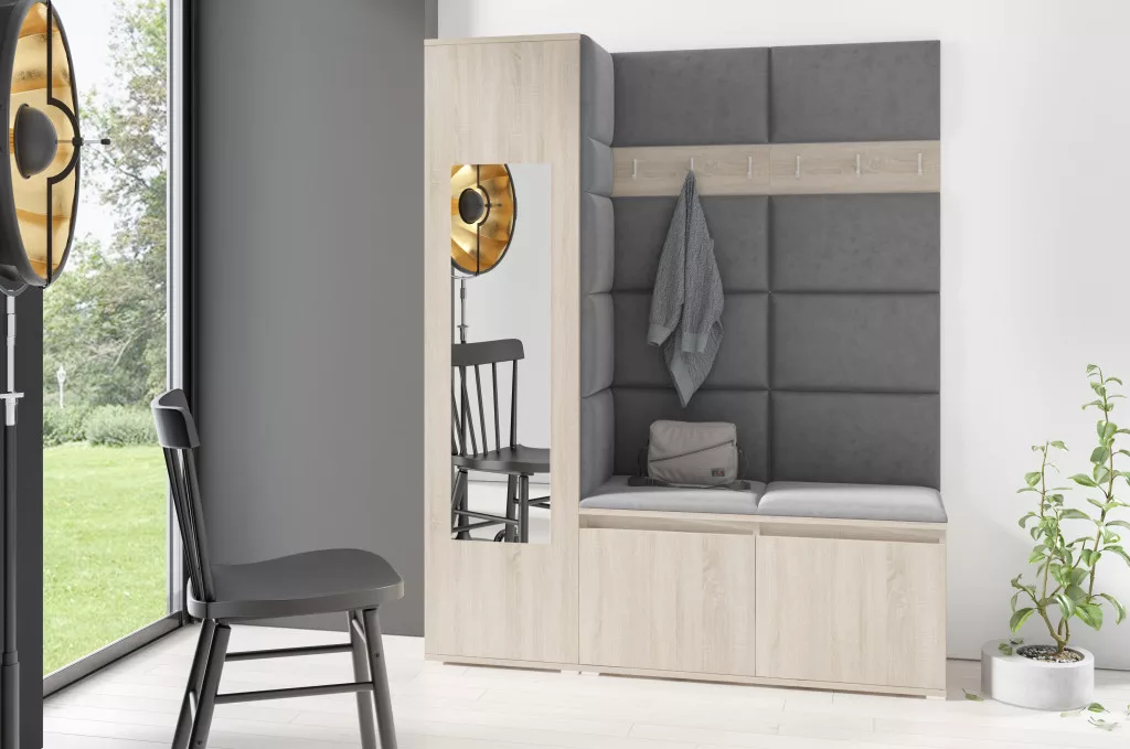 Blum 14 kárpitozott előszobafal tükörrel, sonoma - sötétszürke 15