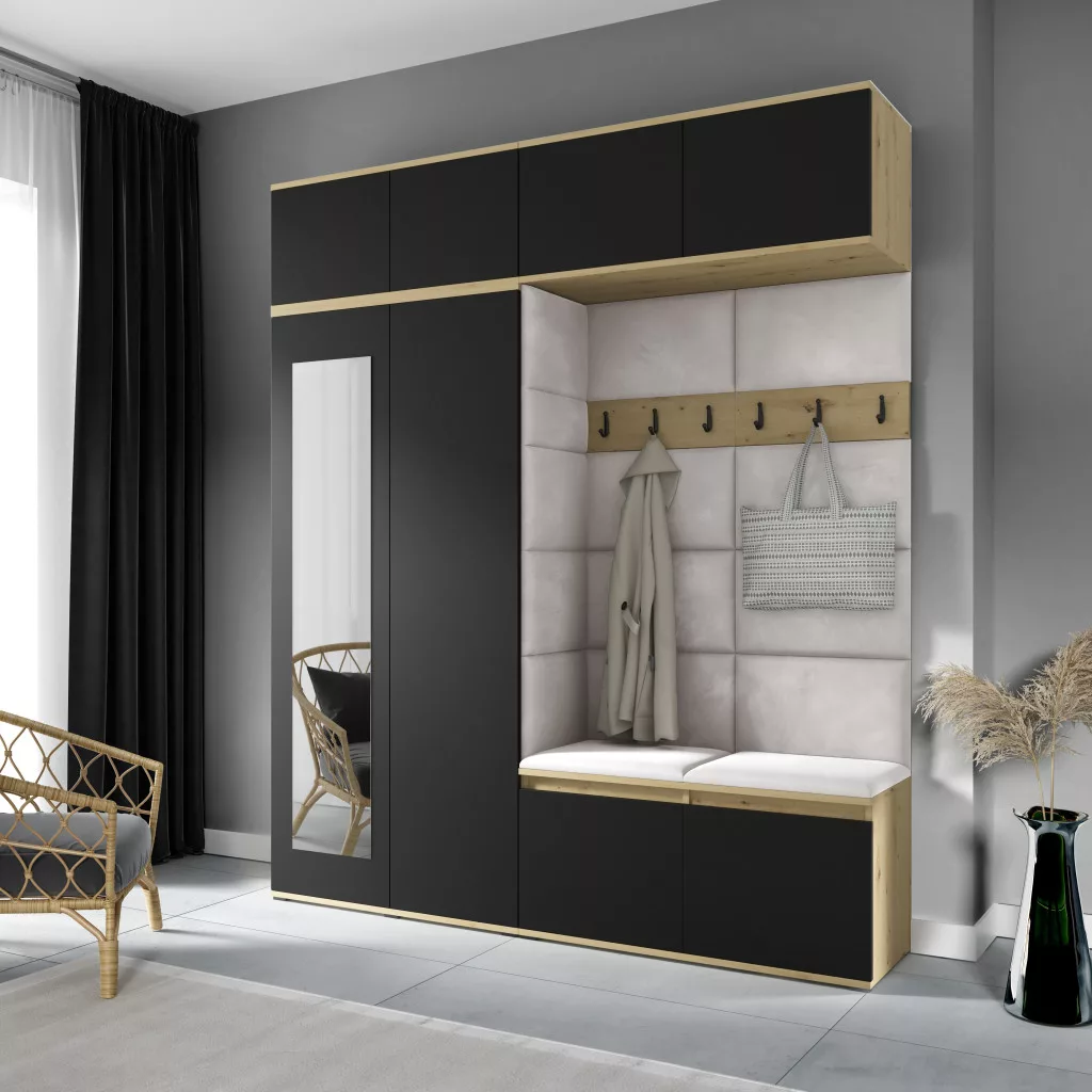 Blum 16 kárpitozott előszobafal tükörrel, artisan/fekete - krém 01
