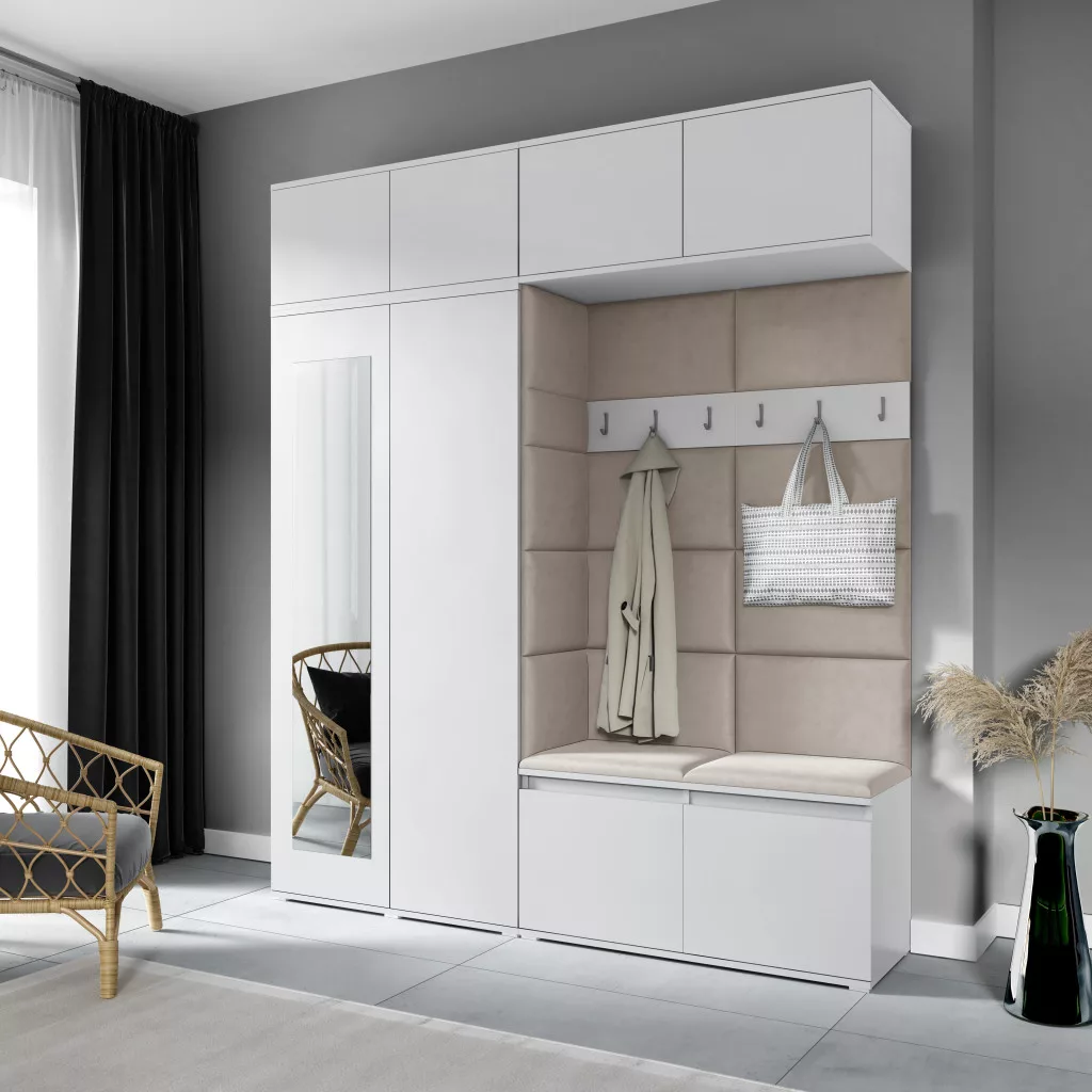 Blum 16 kárpitozott előszobafal tükörrel, fehér - bézs 02
