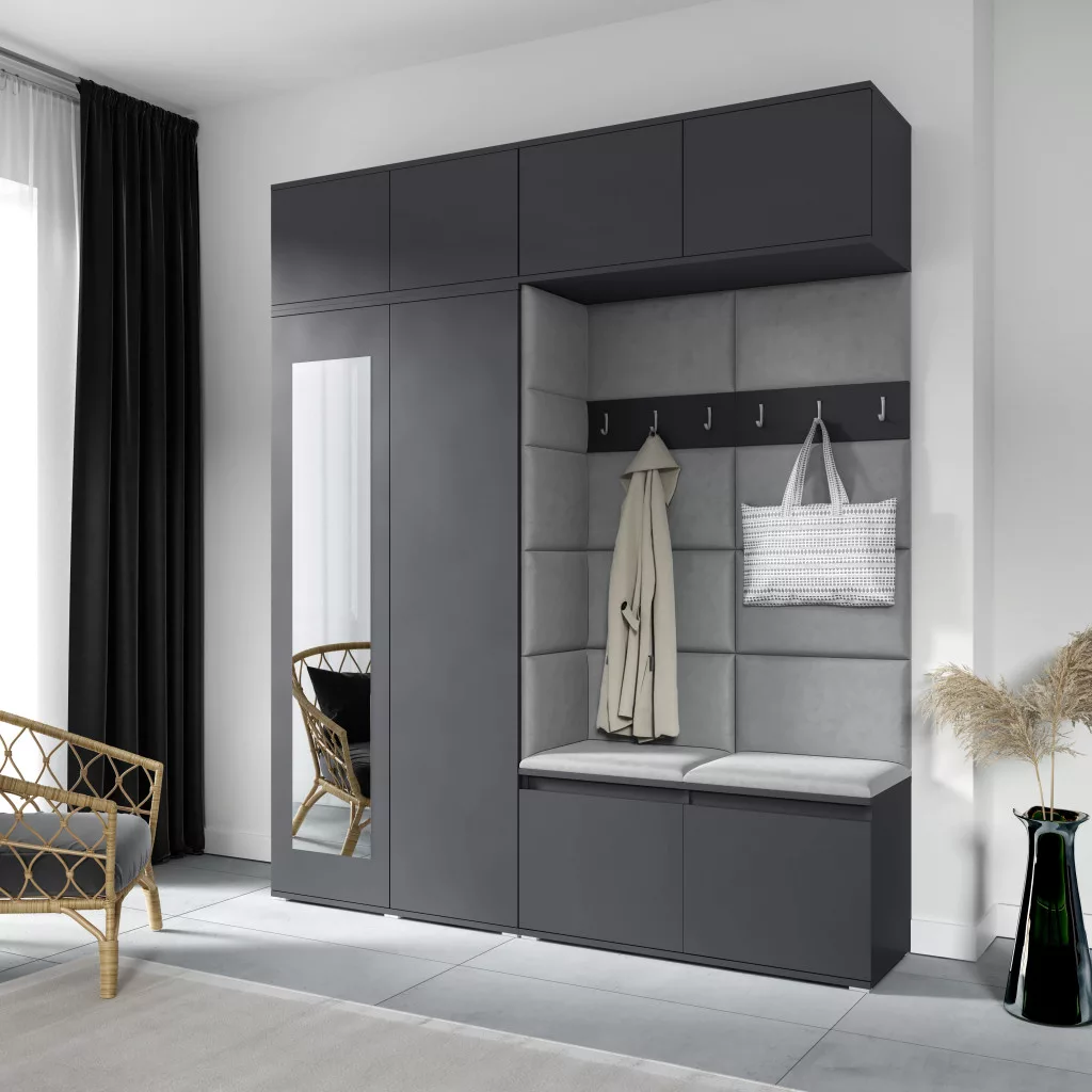 Blum 16 kárpitozott előszobafal tükörrel, grafit - világosszürke 14