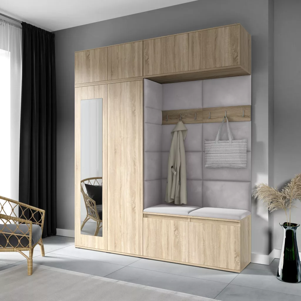 Blum 16 kárpitozott előszobafal tükörrel, sonoma - ezüst 32 - egyedi