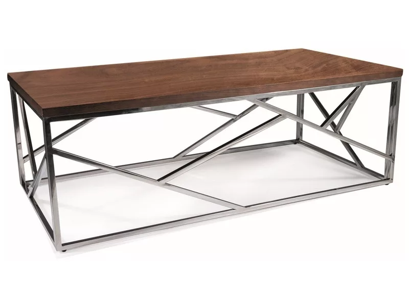 Dohányzóasztal, asztallap: MDF + természetes furnér, váz: rozsdamentes acél, szín: dió / ezüst.